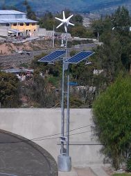 Aerogenerador robusto de origen chino. El cuerpo es de aluminio para disminuir la corosión. Hélice con tres aspas de fibra de vidrio