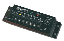 El SunLight (SL) de morningstar es diseñado especialmente para sistemas de iluminación: Se puede seleccionar entre 10 diferentes programas que determinan cuantas horas despues de oscurecerse deben quedarse encendidos los focos conectados al SL.