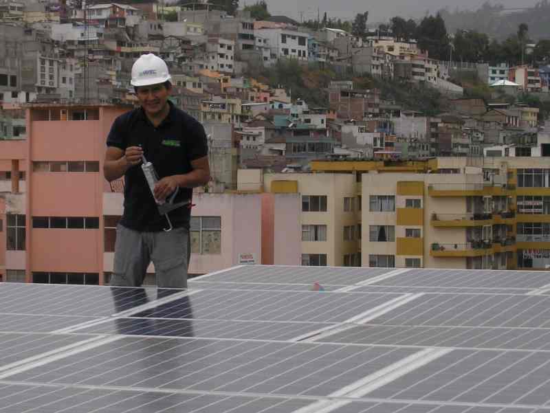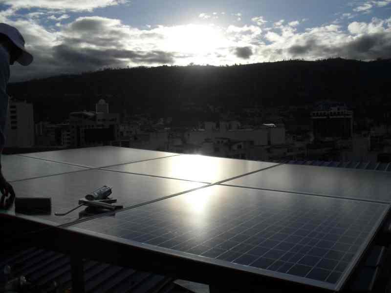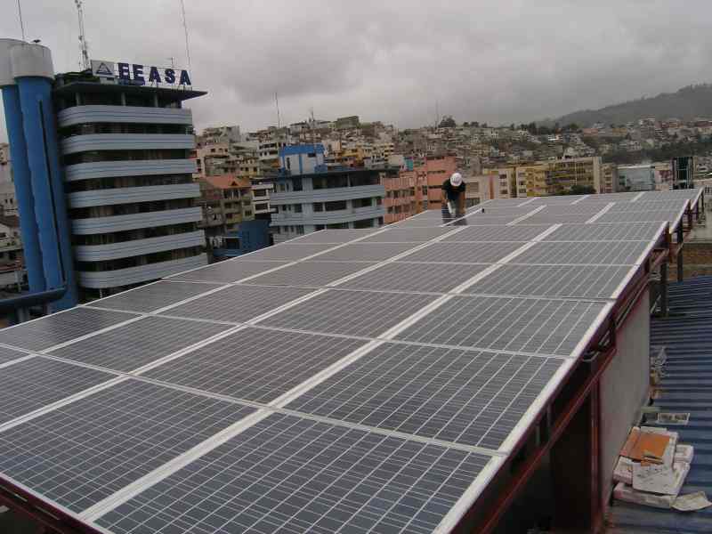 Pero aqui en el Ecuador el Proyecto Fotovoltaico de la Cooperativa Chibuleo en Ambato es un proyecto pionero en cuanto a responsabilidad ambiental y protección de recursos naturales. Un camino al futuro ejemplario para la empresa privada y para el mismo Estado Ecuatoriano, que cuenta con areas inmensas en los techos de sus ministerios para diversificar la generación electrica.