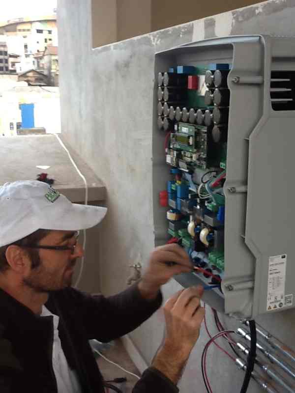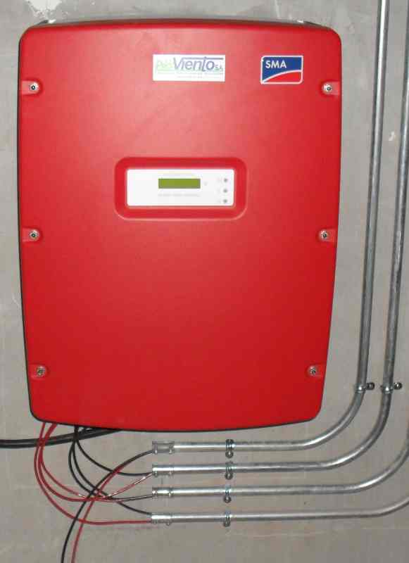 48 paneles fotovoltaicos policristalinos de 155Wp suministrarán una potencia electrica instalada de 7.5kWp que son conectados a la red electrica en el nuevo edificio de la Cooperativa Chibuleo en Ambato. La energía limpia que producen los paneles son conectados en 4 "strings" (12 paneles solares conectados en serie) al inversor de inyección mas soficiticado, proveniente de los expertos alemanes en energía solar: SMA. El voltaje de cada string alcanza los 600VDC y el inversor SMC 6000A lo ingresa su energía perfectamente sincronizada con la red electrica. En un dia soleado ahora la Cooperativa Chibuleo puede contar con hasta 40kWh de energía propria, producida a traves del sol! Vea aqui, cuanto se ha producido en los ultimos dias....