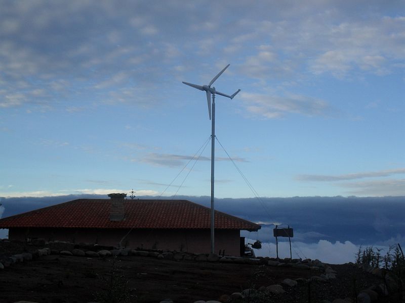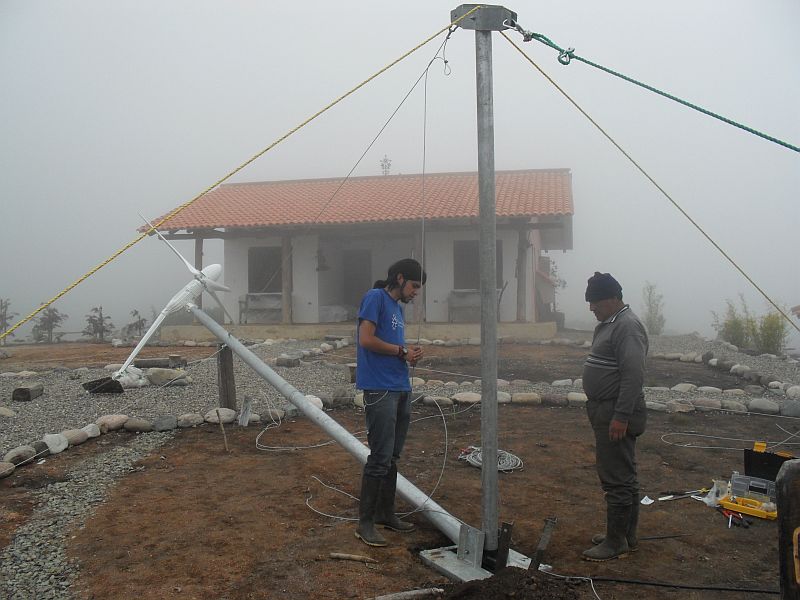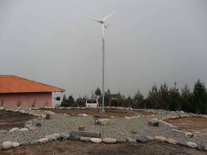 Para el Centro de Encuentro con la Naturaleza y Terapia Social 'GARUMPAMBA' ProViento pudo solucionar sus problemas energéticos: ubicados 75km al sur de Cuenca (Ecuador) en medio de un bosque nativo andino no hay red eléctrica cerca. El sitio del centro educativo se encontraba bastante expuesto al viento así que instalamos un aerogenerador EXMORK 500W/12VDC en una torre venteada de 6m de altura. A traves de su controlador de carga eólico/solar se recarga una banca de bateria 2x CAPSA 100Ah. El inversor EXMORK 1000VA le suministra la energía eléctrica en forma sinoidal pura com 110VAC/60Hz.